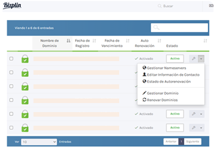 Desarrollado internamente por nuestro equipo, te permite gestionar renovaciones automáticas, controlar los DNS, gestionar contactos, cambios masivos.